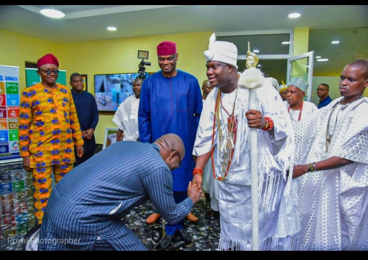 The Ooni even went to Ewi's Palace of Ado Ekiti to see the Obas before they all went to Ekiti State government's house to have meeting with the governor and Prof. Akintoye, the leader of the Yoruba World Congress.