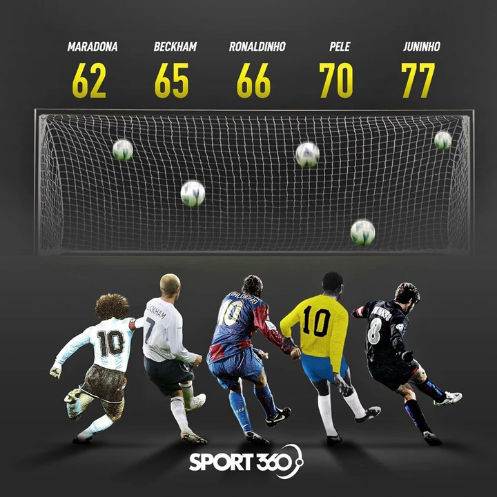 Now these are the top 5 legends with the most prolific free kicks of all time.