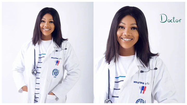 In the photos, Tacha could be seen as a doctor, market woman, chef, teacher, fashion designer, police woman, lawyer, and a musician.
